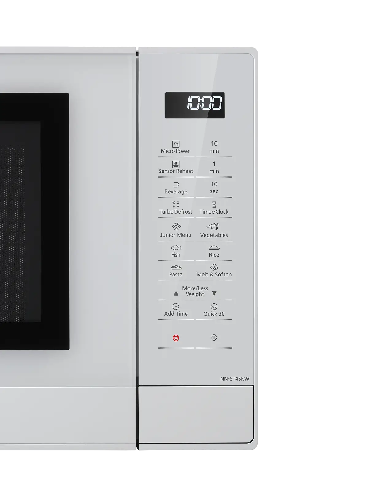 Cuptorul NN-ST45KW are o capacitate mare de 32 de litri, cu un platou rotativ spațios din sticlă de 34 cm. Aceasta vă oferă mai multă flexibilitate de utilizare a vaselor și a farfuriilor de dimensiuni mai mari, ca să puteți găti pentru întreaga familie.