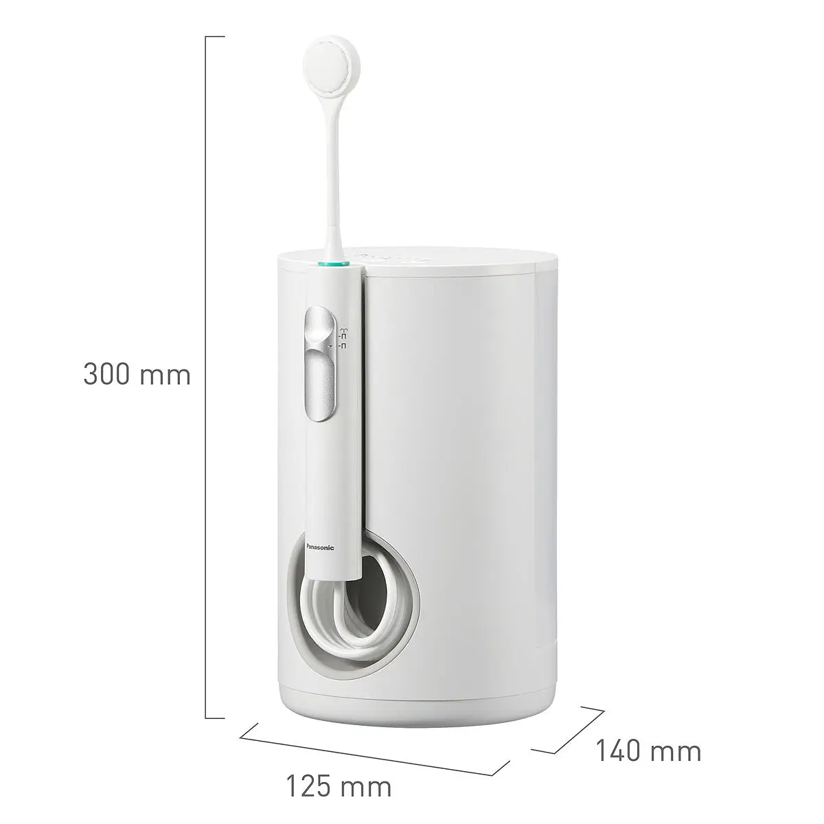 H: 300mm, W: 125mm, D: 140mm, Weight: 998g. *Înălțimea și greutatea totală cu duza de îngrijire a limbii.