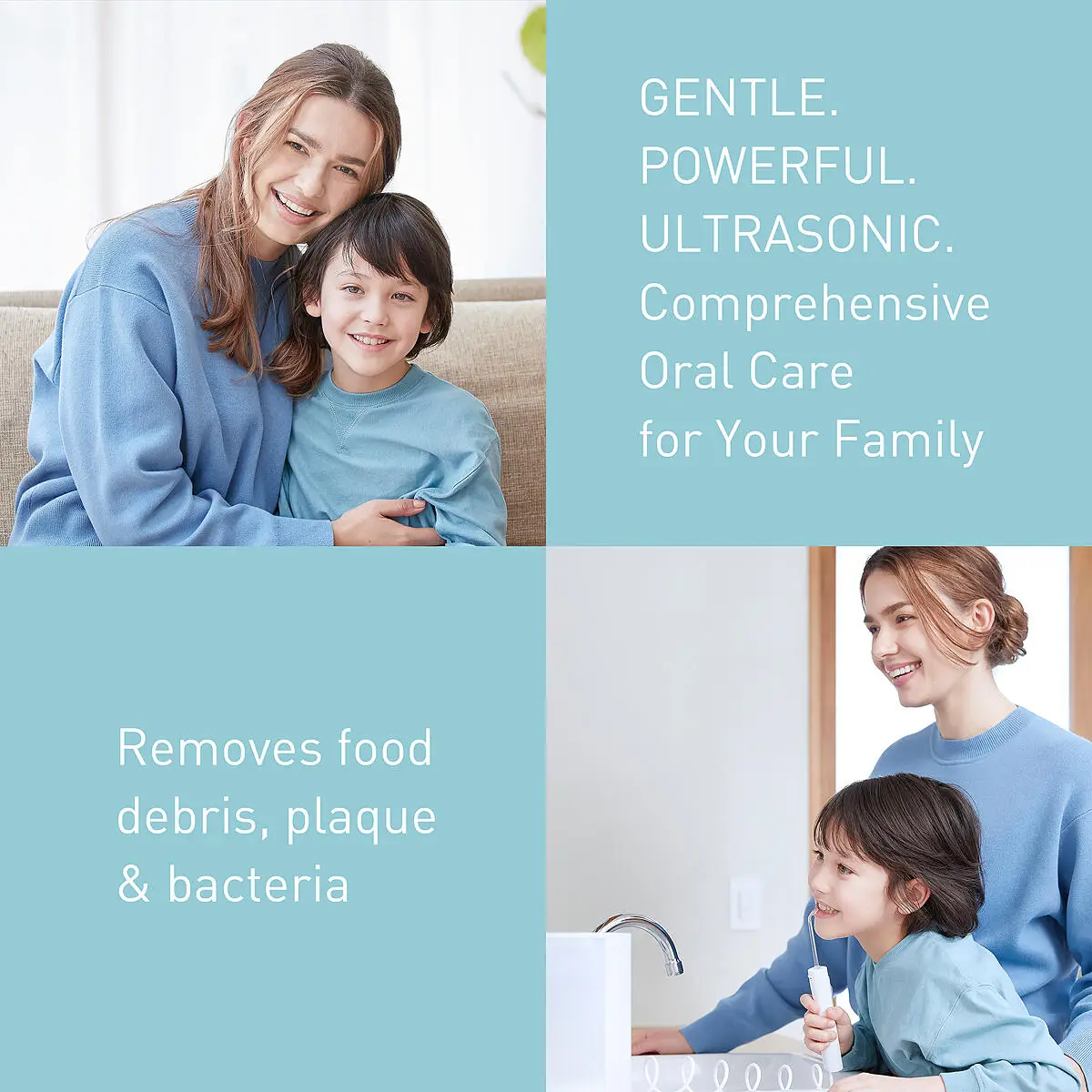 Tehnologia cu ultrasunete brevetată de Panasonic este delicată cu gingiile, dar permite îndepărtarea cu fermitate a resturilor alimentare și a bacteriilor de pe dinți și din spațiile parodontale. Cele 10 niveluri reglabile de presiune a apei și modul Child îl fac utilizabil pentru întreaga familie, de la adulți la copii*.